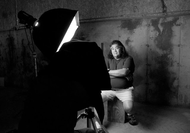 I took these shots as the professional photographer captured Douglas Beasley, our photography mentor, with an old 8 x 10 camera. I loved the lighting here in this big barn like shed with the concrete wall behind him.